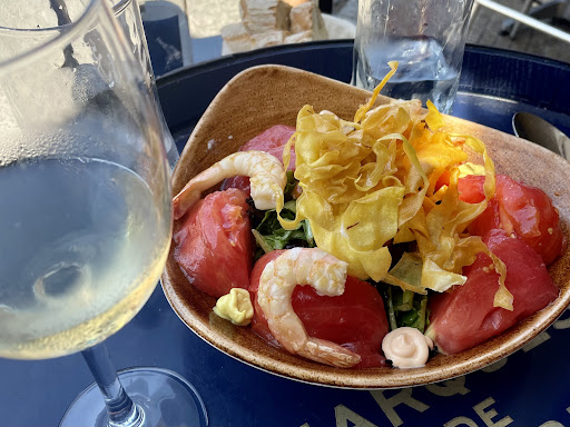 We were greeted by a friendly waiter, the place was busy but he told us we should wait 10 minutes for a table. We noticed two men leaving a small table (“drinks” table) and we asked if it’s ok for us to take it. The waiter didn’t mind at all, although sometimes it can be an issue in other places. We order a house salad, scallops and grilled seabass. Everything was absolutely delicious. This lunch turned to be our best meal in this trip so far… We’d love to come back and check out other dishes...