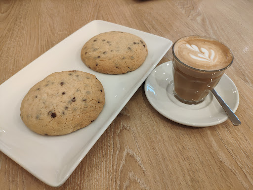 Great atmosphere and lighting. This cafe serves Sakona coffee roasted in Irun in Basque Country for high-quality drinks. Plenty of outlets available, kind service, and a rounded menu. I recommend the croissant mixta. There is seating under their entry way which is open-air but still...
