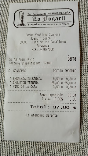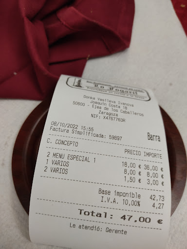 Read moreEnsalada ilustrada, pobre, mal presentada, (sin entrar en calidades, para gusto colores, poco queso y sin quitar corteza, jamón con tendones, lechuga abundante) aliño, aceite y vinagre del poca calidad. Chuletón de ternera, (!por dios, no lo podáis!), Dio la impresión de estar Descongelado en microondas y después calentado en el fuego, (lo pedí poco hecho y estaba cocido). Mi opinión que no tienen idea de carnes en particular y de hosteleria en general. No lo recomiendo en ninguna circunstancia, mejor un bocata...