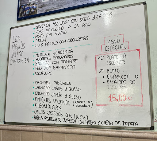 Read moreMenú barato,comida casera muy buena y raciones abundantes,las natillas caseras tienen textura de natilla,no como otras "natillas" caseras que he probado que las tienes que beber en vez de usar la cucharilla;solo he encontrado dos fallos, aunque uno más que fallo es cuestión de opinión personal y es el hecho de que en los cocidos te llevan un plato con la ración,yo prefiero que vengan con la cazuelita y te sirvan en el plato, pero como ya he dicho,es cuestión de gustos,lo que no me gustó,es que con las croquetas te ponen un poco de ensalada, pero la traen ya aliñada y se mezcló el vinagre con las patatas y las croquetas,quitando ese pequeño fallo,todo perfecto y delicioso,lo...