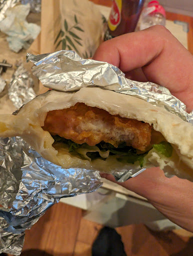 Read morePollo que te viene con la miel y esta muy rico rebozado justo y muy bueno.Edito está reseña porque ya las ultimas veces que hemos pedido el rollito que antes venía con tiras muy rico ahora viene con nuggets congelados que no valen para nada , la tiras las han cambiado y ya no es lo mismo y la hamburguesa ya veis en la foto la partimos a la mitad y una mitad viene sin carne.Que se puedan olvidar salsas y demás puede pasar y no le damos importancia pero ha empeorado mucho la calidad y por eso le quitó...