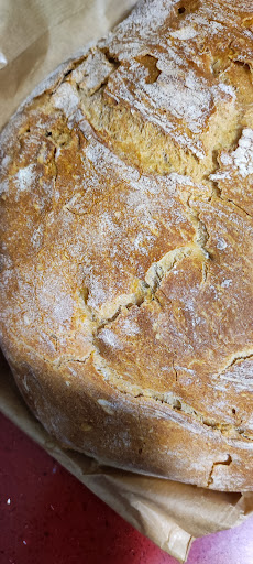 Si estas alli no dejes d entrar y comprar en esta panaderia 10/10,entre sin mucha esperanza la verdad me sorprendio,compramos una hogaza d tres harinas creo k era y madre mia k pan mas bueno el chico super simpatico nos dijo k lo hacian alli pero en fin ya me han engañao tantas veces k uno desconfia pero x mi profesion note k parecia buenisimo el pan y espectacular,su miga,su alveolo,corteza en su punto perfecto,la hogaza candeal igual espectacular pan como este hacia años k no encuentro en madrid claro,y luego los croisanes sin oalabras un sabor k tienen,pille una ensaima frita rellena x k jamas habia visto en pasteleria algo igual e d decir k yo e sido desde joven pastelera 23 años solo jaja ,a lo k voy la ensaima esa es un capricho d dios x favor k cosa mas rica se desahace en la boca me trasporto a pastel antiguo a sabores d antaño k ya no se encuentran nata y crema espectacular y el bollo lo dicho un capricho de dios pura ambrosia,volveremos vamos eso seguro todas las veces k pasemos x alli x k a parte d sus deliciosos bollos y panes ,la amabilidad y simpatia del chico k nos aconsejo en todo y encima nos dijo k podiamos visitar en el pueblo.de10/10 teneis...