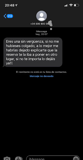 “Eres una sin vergüenza, si no me hubieses colgado, a lo mejor me habrías dejado explicarte que la reserva te la iba a poner en otro lugar, si no te importa lo...
