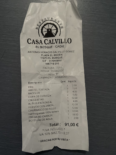 Read moreCoincidió en un día de carnaval (en plena cuaresma, pero cada vez hay menos principios) así que el pueblo estaba hasta la bandera. Cualquier restaurante estaba lleno, cuanto más este, enclavado frente a la fuente más fotografiada de El Bosque. Entramos a buscar al Metre que rápidamente nos tomó nota en la lista de espera para ocupar mesa y mientras nos acomodó en mesa alta con un vino y queso de cabra del lugar para amortiguar la espera. Unos 20 minutos más tarde pudimos sentarnos en terraza. De agradecer que la carta sea física, impresa en papel y no el dichoso QR. Pedimos una tapita de chicharrones de la casa que estaban algo pasados de fritura y por tanto, un poco durillos, aunque bien de sabor. Luego pedimos unas gambas al ajillo que estaban la verdad, muy ricas. Gambas bien de tamaño y sabor, emplatadas en una minipaella recién apartadas del fuego. Hablando de fuego, las brasas en este local están en el medio del comedor así que atravesarlo para ir al baño es aromatizar el olfato de leña y carne, por eso el último plato que pedimos fue un solomillo ibérico a la brasa. Presentado en pieza entera abierta a la mitad con sal en escamas y papas fritas caseras. La carne cocinada al punto, muy tierna, jugosa y con ese sabor a brasas inconfundible. La única pega es el ruido ensordecedor de la terraza. Está cubierta y cerrada con toldos por lo que el ruido se satura y no hay modo de conversar. Por lo demás, muy recomendable. El servicio de todos los camareros de...