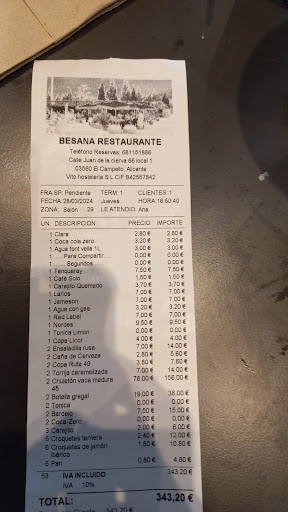 Read moreHoy hemos visitado Besana un restaurante situado en el PAU 5 de Playa de San Juan, una zona conocida por su exclusividad y su oferta gastronómica. Sin embargo, nuestra experiencia estuvo muy lejos de las expectativas, especialmente considerando el precio final de 140€ para cuatro personas.