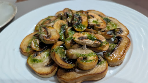 Mushrooms - Oh my!! What a delight! My husband is a great lover of mushrooms. Me, not so much but I tried them and couldn't stop eating them! They were super tasty, cooked to perfection and every mouthful was a taste sensation 🤤 Vegetable provolone - Large portion, lots of chunky vegetables like corgette, mushrooms etc underneath the bubbling cheese. Served with a basket of bread. Very very nice.