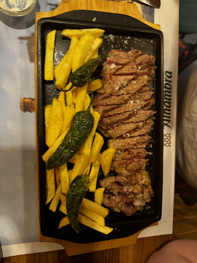 We asked the waitor out of the meat what he would recommend, so we went with that, although everything looked amazing! The meat came with fries and some padron peppers on top.