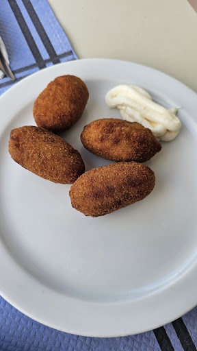 Buenas. Bueno, mi señora y yo decidimos parar a comer aquí por el precio del menú 14,50€. Tenían una serie de raciones o un menú cerrado. Como el gazpacho sólo figuraba en el menú, pero no me convencían el resto de platos del menú le pregunté al camarero si podía escoger gazpacho como plato de la carta y luego escoger otro. El camarero me contesta que no tienen carta. Bueno, pensé, serán humildes, o los platos serán muy buenos... . Pues no. Mi mujer y yo pedimos de primero gazpacho yo y croquetas con gambas ella. El gazpacho me lo traen en un plato de sopa a temperatura tibia, ni frío, ni caliente. Y al probarlo me doy cuenta de que tenía un exceso de agua, y muy poco sabor. Falta de verduras buenas?. Mal cocinado?. Aguado seguro. El caso es que intenté comerlo y no pude. Le cuento esto al camarero y me contesta el gazpacho se come frío, y le digo precisamente, es que no está frío. Y me réplica, pues otros clientes se lo han tomado. Ok. Entendido todo. Mi mujer prueba las croquetas de gambas, cuatro y unas angulas de lata en el medio. Me dice: y dónde está la gamba. Y saben a refrito. El camarero me cambia el gazpacho por croquetas, por misterios de la vida, a mí me llegan sólo 3 croquetas, y las angulas con un trocito de ajo que ha pasado alrededor de 5 segundos en la plancha.