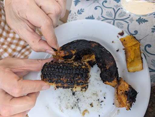 Absolutely horrible food. I not sure if it's a drinking or eating place, perhaps their drinks are good, I did not try. We were hungry and we came to eat. And holy cow... Let me just say the tastiest thing we had there was coca cola. Look at these "grilled vegetables". More like a platter of charcoal. The ribs were at least a few days old. The burger was... I mean I can't figure how can one screw up a burger so bad... The patty was like a hockey puck. It was grilled to Kingdom come, had not a hint of moisture in it. And the burger had no sauces whatsoever. The whole experience was like chewing a ball of cotton. It would be hilarious if I didn't have to pay for it. The sausage platter, I dunno. It was 75% horrible, 25% edible, but perhaps it's just a local thing, maybe I just like different things. What I did is I grilled the chorizo on the grill the burnt veggies came on and it was nice. The rest of "charcuterie" was just plain bad.