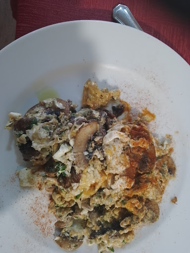 Un sábado a las 16:08 de la tarde buscábamos un restaurante donde comer un menú baratito y luego visitar los baños de la reina, a esas horas pocos bares ofrecían menú y encontramos este, nos dijeron que si que nos servían el menú, una pena que no hubiese los dos primeros mas suculentos del menú (Arroz a banda ni ensaladilla rusa) pero había una carta amplia, yo pedí revuelto de champis y estaba normalito con una cantidad más bien pequeña, mi novia pidió unos espaguetis bastante simples también, de segundo calamares a la romana y merluza con patatas fritas (El rebozado de los calamares sabía bastante mal y me tocó cambiar el plato con mi novia y comérmerlos yo, la atención fue bastante buena, y el precio (11€ el menú, sin café) en total comimos por unos 27 euros los dos, que para ser temporada, la zona y el horario nos salió bastante bien, una experiencia que no es mala ni buena para una persona no muy...