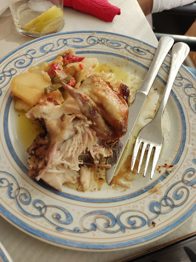 Hoy hemos decidido la malísima opción de pedir comida para llevar en este "cuchitril" 1°Pollo asado: el pollo bañado literalmente, en aceite, sin el aliño propicio de un pollo asado, la piel quemada y sin sabor a nada, hemos tenido que acompañarlo con salsa barbacoa para poder comerlo... 2° Carne con tomate: uuufffff la carne dura no, lo siguiente, la salsa solo era sabor a ajo, malísima de verdad. Parecía imposible que una carne con tomate no estuviera buena...pues aquí lo consiguen😐 3° Ensaladilla rusa: 🤣🤣🤣🤣🤣🤣 Señores de ese establecimiento, no vendan esta verdura congelada, adjunto imagen, como ensaladilla rusa por favor!!! Qué manera de estafar a la gente!!! Eso sí, iba muy bien camuflada de mahonesa 😒 Además, estaba pastosa, textura de chicle, como cuando lleva un rato cocida y se enfría....que poca vergüenza!!!!! Y más aún, a un precio desorbitado!!! Señores clientes, sin ven eso allí, no lo pidan o reclamen comida decente. 4° Tiramisú: 🤢😵 me encanta el tiramisú, he probado de muchas maneras, pero este se lleva el premio del peor con diferencia!!!! La cremita blanca en exceso, demasiado compacta, 0 azúcar, osea, insípida total, y...con canela!!! Señores de ese establecimiento, el tiramisú clásico, NO lleva Canela!!!!! 5° Tarta 3 chocolates: ENHORABUENA ( Irónicamente) es el único plato que han sabido hacer bien leyendo las instrucciones de la cajita de dicho postre😂😂😂 Me río por no llorar Describiría mi almuerzo de hoy con un solo nombre: ¡¡¡¡BAZOFIA!!!!! AHHH El Pan, duro eso sí, del día anterior mínimo!!! No recomiendo este lugar ,que incluso es poco higiénico, por eso no comimos allí, pero tampoco recomiendo comida bazofia para llevar. Deberían de tener un poco más de vergüenza y servir al menos comida decente. Todo por el módico precio (...