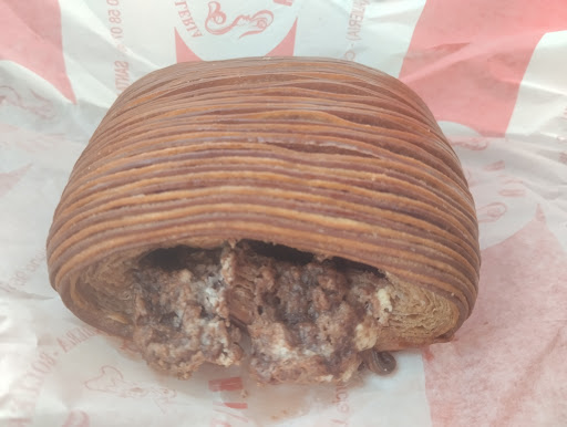 Acudí a esta pastelería y confitería situada en la población de Santa María del Águila cerca de El Ejido donde tienen otras dos ubicaciones. Se trata de un establecimiento especializado en productos dulces de bollería y pastelería con muy buena pinta como croissant, palmeras, rollos y demás, aunque también tienen algunos salados como empanadas. En mi caso pedí un New York roll de Kinder que estaba bastante bueno con una superficie crujiente y bien relleno, un croissant de pistacho con buens masa y el pistacho como topping y como relleno, un rollo de canela con almendras que estaba también genial, un pastel con crema y nata muy grande con un relleno riquisimo, y por último un hojaldre de chocolate bien crujiente y con buen toque de chocolate. Todo tuvo un precio...