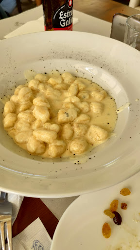 Comida: pedimos tanto menús de niño como ensaladas, gnoquis, pizzas todo exquisito, pero los gnoquis para mi gusto al ser a los 4 quesos le falta un toque más de queso porque era más nata que ese sabor a queso. Ensalada muy buena, pizzas bien de tamaño e ingredientes y el menú de niños lo justo para ellos.