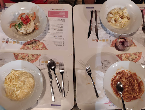 Read moreEstuvimos anoche 7-7. Llamemos para una mesa a las 10:30 y todo correcto es llegar y sentarnos, nos atendieron rápido pero la cena nos la pusieron a las 12 de la noche. La verdad es que todos los camareros son muy atentos y la pasta y la pizza estaban muy buenas. Por la tardanza en otras mesas vimos como pedian disculpas y le ponían un chupito a los clientes y dijimos, bueno mira tienen el detalle de pedir "disculpas".... terminamos de cenar a las 00:30 y pedimos la cuenta, cuando la traen veo que los precios no eran los de la carta, la diferencia de lo que me tenían que cobrar y lo sobrado era unos 5-6 euros y cuando viene en muchacho se lo digo y me dice que si no me había dicho nada el que me habia tomado nota.... que es que han tenido que subir los precios de la carta pero que no lo han cambiado del papel!!!!, nos quedamos un poco a cuadros, mi fallo fué no tomarme una foto para enseñarla aquí. Por no discutir y entrar en nada ya que íbamos con 3 niños pequeños que ya estaban cansados le pagué, la verdad esperando que me dieran algo de por todas las molestias un chupito, pero nada!! Le pagué y nos fuimos con un mal sabor de boca. Ya habíamos estado varias veces allí y otras tantas había ido a por pizzas. Creo que estáis desbordados en verano y lo de los...