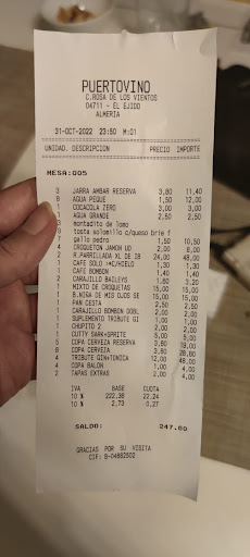 Fuimos a tapear a este restaurante, el Puerto Vino, la noche de Halloween e hicimos la reserva por teléfono para 16 personas. Los camareros no dejaron de preguntarnos y de “presionarnos” para que pidiésemos raciones en lugar de tapas que era nuestra intención inicial. La comida, no es que fuese la mejor del mundo, aunque pasable, nada especial que destacar o criticar.