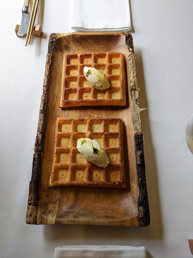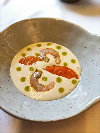 Read moreNunca me gusta dar menos de 4 estrellas, por que creo que es menospreciar el trabajo y esfuerzo de mucha gente. Se ve intención en la cocina de Héctor. Quiere hacer cosas y destacar, pero patina en varios aspectos. Quiere meter tanta complejidad en los platos, que se pierden los ingredientes. Es necesario que el paté de hígado de pato lleve café cuando ni se nota? La croqueta de leche de Colmenareña con pintada y setas escabechadas si me dices que no lleva ni setas ni pintada, te creo. El arroz, lo peor de toda la comida. Mal ejecutado, frío, con sabor a tomate crudo. Los postres muy buenos, muy buena técnica, texturas y contrastes. Camarera perdida, que nos contaba a nosotros unos platos y a los de la mesa de al lado, de otra forma. El chef también lo hacía, no hay homogeneidad en el servicio. Son rápidos y controlan muy bien los tiempos y temperaturas de los platos (excepto paella). La mazamorra, espectacular. El ramen muy bueno. El pargo, pasado de cocción, pero muy equilibrado. Al cordero le falta personalidad. Muy plano. Necesita algo más de punch, algo que te sorprenda. El gofre me estropeó la comida, ya que las hierbas me estuvieron repitiendo 4 horas.
