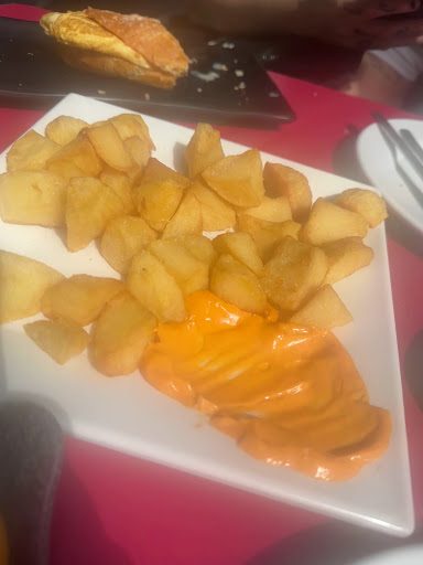 Stopped here after visiting the beach after a local person recommended this place (which was kind of them). The food was pretty basic, the calamari wasn’t very good and the patatas bravas wasn’t displayed how it should’ve (just came out as thick chips and sauce on the side). There’s no atmosphere at all but I’d say if you do end up here it’s better to sit outside even though there’s the sound of passing cars as it’s right next to the main road (relaxing!), inside the bar seemed unwelcoming and wasn’t somewhere I wanted to eat. The server although accommodating had dirty hands and fingernails so I didn’t feel comfortable with him handling my food but I was super hungry. It was over priced for the standard it came at as it just seemed like food from the freezer chucked in the oven...