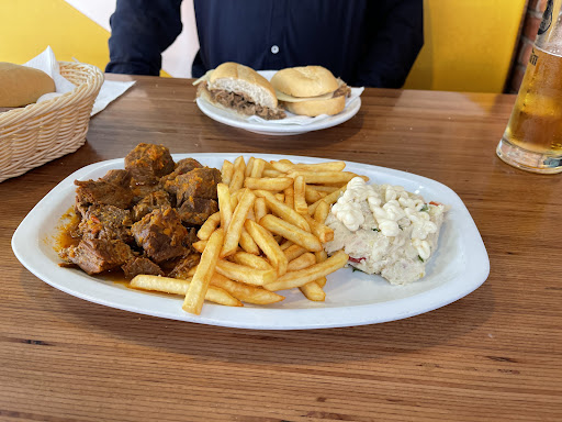We are Americans visiting La Palma. The food here is American-style but not what we eat typically. The food we had on the three occasions we ate here (our bungalow is about 80 meters away) was very tasty. We had plain fries as the crazy fries are not something we would enjoy. They were very popular with the young people though. The onion rings are amazing. I highly recommend them. The half meter sausage was good. My husband and I shared it. He also ate half of his tuna sandwich but they wrapped up the rest to eat later. I had the beef in tomato purée twice. Delicious! The desserts are ok. My favorite was the Oreo pudding. The first two times visiting were not busy but we ate earlier and during the week. The third time was a bit later on a Friday and it was packed. One of the servers turned out to be one of the owners. He (and the female server) were very welcoming and very busy. The prices were very inexpensive. We are staying in the same bungalow in April 2023 and we look forward to eating here again. (I’m currently sitting on the bungalow veranda and can see the outdoor seating area. It’s packed and it’s only 15:20 on a...