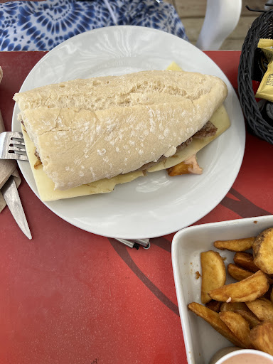 Al llegar todo iba muy bien, sombra y vistas geniales, servicio correcto. Pedimos un plato combinado de hamburguesa, una ensalada de tomate que pintaba bien por los ingredientes (y por llevar el nombre del local, apuntaba a plato estrella) y unas tallarinas. Pues bien, llegó el horror...la hamburguesa se reduce a pan-trozo de carne-pan y patatas congeladas (12€!), el tomate tan verde que parecía una manzana y unas tallarinas con una rodaja de limón que no tenían sabor a nada...no todo vale por saber que eres de la poca oferta que hay en el lugar...no recomendable, hacía tiempo que un sitio no me generaba tal decepción. Como aspecto salvable, a reclamar el tomate incomestible una responsable aceptó reducir el precio de la ensalada. En resumen, buen lugar para tomar algo de beber pero...