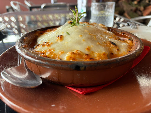 And then the egg plant cheese heaven (€9,50) ... out of this world! Again the probable home made tomato sauce, infused with a heap of cheese and of course the egg plant; it was grilled so long that the skin became smooth as butter. I scraped every little piece of cheese and egg plant of the dish before allowing the waitress to clear it off our table.