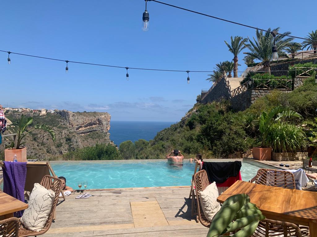El sitio es precioso y el ambiente con la música muy agradable, para estar en plena ola de calor se estaba muy bien pero además te puedes refrescar en la piscina que tiene unas vistas impresionantes (la que aparece en la foto).