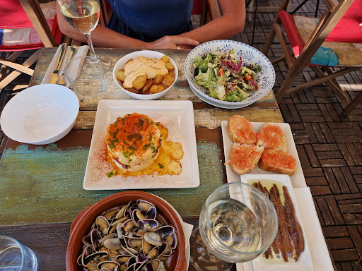 Read moreTiny tapas locale with a pleasant terrace overlooking the marina. Service very friendly and helpful. Best to take the terrace - the actual restaurant is very small and the kitchen is in the middle of it. We had the anchoas, bravas, coquinas, ensalada de aguacate and salpicon de pulpo with potato. All good except for the coquinas ( tiny flat shellfish) which were bland. A couple of glasses of a local dry white wine, coffees and water. An enjoyable experience - the terrace view is a big plus. We went during the week and it was not problem to find a table. On weekends you must definitely book in advance. After eating nothing better than a refreshing dip in the cristaline waters. If you swim off the rocky coast away from the beach best wear swim foot wear as the rocks are very sharp, unforgiving and hide...