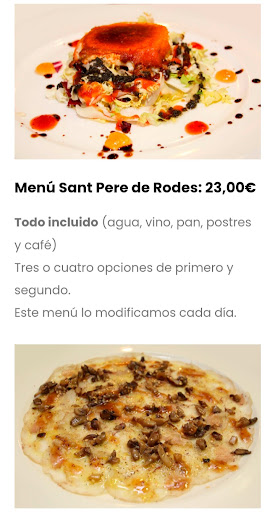 Read morePosiblemente no habrá comido con unas vistas iguales. Restaurante ubicado dentro del Monasterio de Sant Pere de Rodes, las vistas son simplemente sin igual. El servicio, mas que correcto y profesional, tiene un espacio limitado y es aconsejable reservar, especialmente en festivos (pidan una mesa en el lado mirador). Por lo que respecta a la comida disponen de 2 menús de diario, con uns precios razonables (17 y 32€), nosotros optamos por la carta para degustar sus platos principales, carpaccio de atún, perfecto (esperen al retrogusto después de ingerirlo), el de gambas, realmente fuera de lo común y el pulpo al "oli de carbó", excelente, de segundo nos dejamos aconsejar y tomamos una suprema de "turbó", bien, aunque debo decir que he degustado este pescado mucho mejor, no obstante nada en contra simplemente constato que quizá no fue lo mejor de la comida. De postre, tomen "els taps de Cadaqués" y "les roques del Cap de Creus", simplemente genial. Para beber tomamos cava de Perelada brut reserva, agua y cafés, todo por 133,60€ (3 comensales). La experiencia, en todo caso, es mas que positiva, el lugar especial, la vista simplemente única, y la comida y servicio en su punto, por tanto...