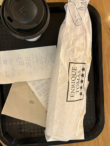 Read moreI am a vegetarian and Enrique Tomas is not my usual go to place. However, today at the airport out of curiosity I asked them if can do a bocadillo de tortilla(sandwich with Spanish omelette) only as I don’t eat meat. The girl at the counter said they can do with omelette only but they will charge for their standard sandwich that has omelette and Jamón so they charged me 11,25€ . Enrique tomas is a brand in itself so they don’t need to do such petty things. If you are selling a sandwich with omelette only, don’t charge for a sandwich with jamón & omelette. It Is not a fair practice. Bit disappointed. Rest, service was quick and staff was nice considering that there are always long queues at the airport and can be sometimes overwhelming...