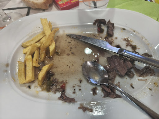Aunque la comida está buena, es carísimo para la cantidad de los platos. No pidáis solomillo porque os ponen medio filete de ternera y eso es el menú especial (casi 20€) Se ve que tiene hasta el nervio del filete de ternera en la foto (se supone que el solomillo es magro y de un grosor considerable). Las carrilleras se supone que son con salsa de vino tinto pero vienen "al agüita" como se ve en la foto que adjunto. La ensalada de ahumados, hay que pararse mucho a buscarlos... Ms lechuga que otra cosa. Pedimos un filete de pollo para un niño y me cobraron el menú infantil ENTERO (11€) El café que se supone que está incluido en el menú (y más en el especial), nos lo han cobrado a parte, será porque lo hemos pedido italiano 🤣 Conclusión: si podéis, evitar el sitio. Mejor buscar otro...