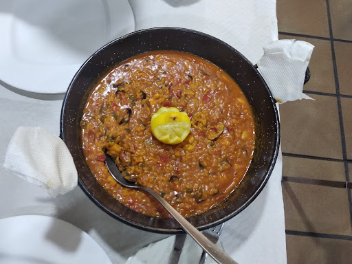 Read moreLlegamos para cenar sobre las 10 de la noche y el camarero, muy olvidadizo por cierto, debia de tener ganas de marchar que nos atendio de mala manera. Tuvimos que repetirle varias veces que nos trajese pan, bebida etc. Despues nos puso un plato de revuelto con gambas que no pedimos y al rato de comer un poco de gambas y huevo nos lo quito alegando que no era para nosotros, se lo llevo y alos dos min le puso otro igual alos de al lado... jejeje. Pedimos parrillada de carne iberica para 3 y la comida era escasa y estaba muy muy aceitada... enfin un sitio...