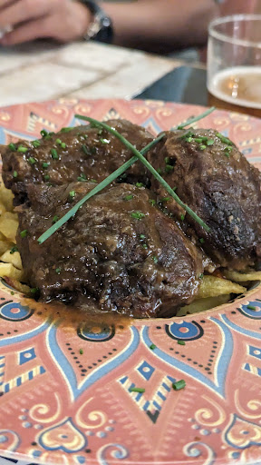 La calidad de la comida calidad/precio es indiscutible, notándose la calidad en cada plato. Desde la ensaladilla, pasando por el cachopo en su punto, chocos tiernos, nachos y creo que cualquier plato de la carta. Cerveza Estrella Galicia que se agradece.