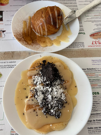 Read moreLlevo varios meses viniendo con regularidad a este local en concreto y aunque la atención es buena y no tengo queja en ese aspecto he de decir que siento que la calidad/precio de los productos no es la adecuada. Por un lado han tenido productos en carta que he estado pidiendo durante 1 mes entero y siempre me dicen que no le quedan (hubiese preferido que me dijesen que no lo hacen y quitado de carta y no pregunto más por él). Luego tienen literalmente "Tortitas de Kinder Bueno" y lo que te ofrecen no es de la marca Kinder Bueno, sino un sustituto. No sé si pasará lo mismo con los batidos y otros sabores como Oreo porque no he llegado a pedírmelo... Por último suelo pedir molletes con ingredientes al gusto y el precio en comparación con lo que te ponen creo que no es del todo proporcionado (solo el pollo braseado por ejemplo es 1,90 y te ponen poca cantidad). Al final el precio de un café mediano y un mollete pequeño con 2 ingredientes me salió la última vez 7€. Solo espero que este tipo de comentarios llegue a los de arriba y lo tengan en cuenta para la...