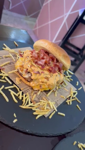Hamburguesería de 10, algo escondida (la encontramos gracias a Maps) pero merece totalmente la pena, si estuviese más visible estaría llena a todas horas. Precios bastante bajos para la calidad de los productos, unos 11€ la hamburguesa triple smash de black angus, me parece ridículo cuando en Burger King o McDonald's te cobran 10€ por una hamburguesa que parece de cartón-piedra... De entrantes pedimos las patatas rancheras y MUY ricas, crujientes, suaves por dentro, bastante cantidad tanto de patatas como de bacon y queso, sobre todo para los 8€ que cuestan, no vas a encontrar ni una sola patata que se quede "seca" por escasez de queso, bacon o salsa.