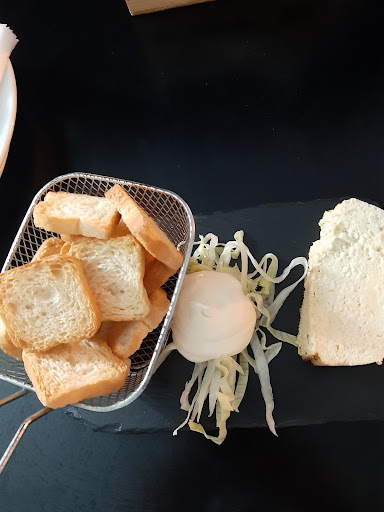 Comida: hemos pedido albóndigas, ración de chocos fritos y patatas de tres salsas. Las albóndigas eran un mazacote de carne picada seco, que gracias a que tenía algo de salsa podía tragarse...la ración de choco escasa y disimulada con un plato grande y la ración de patatas con 3 salsas eran patatas congeladas con los chorretones de mayonesa, brava y Cabrales por encima. Después de bebernos nuestros tintos de verano, pedimos a la camarera rubia (la que era incapaz de ser agradable) otros dos. Y uno de ellos sin ninguna vergüenza nos lo sirve casi entero de casera y practiicamente sin vino. Le hemos pedido a la jovencita si podía echarnos un poco de tinto que estaba demasiado transparente. Y la chiquita muy maja. Los cocineros cocinando sin mascarilla, muy poco higiénico y en época de pandemia inadmisible. Pero si deciden saltarse las normas, que no sean tan evidentes, porque se veía perfectamente que sudaban y ni mascarilla ni nada. Pero vamos, que no es excusa, eso no debería ni permitirse.