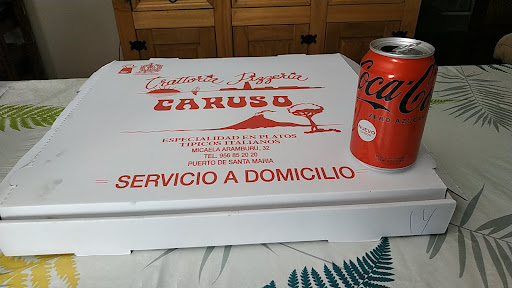 Read moreHoy pido para cenar una pizza y mi sorpresa cuando me traen la pizza veo una caja súper chica y cuando lo abro he tenido que coger una lupa para verla 24cm de diámetro cuando lo normal son 28cm de diámetro, han recortado el tamaño y antes era más grande, una pizza de 24cm por 9,50 € lo veo excesivo en el precio, no entiendo por qué hacen estas cosas pero es la última vez que pido al CARUSO, que forma de estafar, he puesto 1 estrella por que no se pueden poner menos, no se merecen ni una estrella, adjunto fotos. Muchos clientes se quejan de como nos engaña la empresa, pizza de medio metro que es 50 cm y te mandan una de 40cm y pagas 50cm, no entiendo que ganan haciendo esto con sus clientes, ni siquiera piden disculpa, ojalá nadie entre o pida comida en su restaurante es de vergüenza tratar de robar a...
