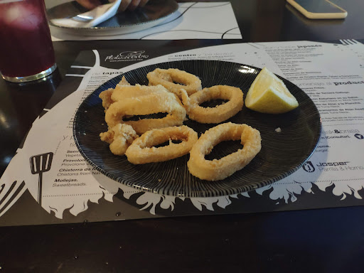 Media ración de calamares (1/5) media ración escasa (6 anillas de calamar) a un precio elevadísimo 8€, la calidad muy normal, nada recomendable.