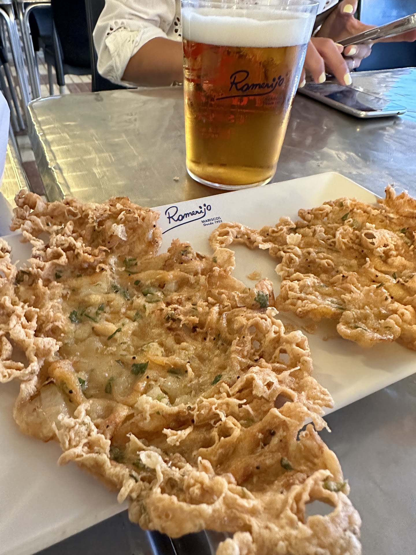 Llegas, coge número (porque sino, haces la fila y no vale para nada). Pides el marisco, y lo pagas (a precios que teniendo el mar enfrente deberían de ser relativamente bajos siendo el concepto de restauración tipo Pescaderia). Los fritos y bebida, los pides en mesa (algunos). En 15 segundos desde que pedimos las tortillitas de camarones estaban encima de la mesa. (Indescriptibles). Si a mitad de cena quieres algo más, hazte de nuevo la fila. Los rebozados son un despropósito, ya hechos y más blandos que la plastilina en agosto. Nada sabrosos, sin ningún tipo de gracia ni motivo para volver a pedirlos.