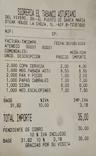 Un trato inaceptable... Este medio día( día de reyes) nos apetecía un cachopo y dado que ya lo habíamos probado un par de veces decidimos "intentar" pedir al Tabanco asturiano.Como he comentado no era la primera vez que pedíamos la comida para recogerla y llevarnosla, estuve como tres cuartos de hora intentando llamar al local. El único número que aparece en la web es un móvil que se encontraba apagado. No quise renunciar a mi deseo de un canchopo y fui directamente al local. Llegué allí a las tres y cuarto como muy tarde. Me atiende el dueño, le comento que venía a hacer un pedido para llevármelo y me dice que imposible que estaban completos ( es cierto que la terraza estaba llena, pero dentro tan solo había una mesa ocupada). Le comento que he venido porque era imposible hablar con ellos por teléfono y me responde que sí, que cuando están completos apagan el teléfono( de traca), le insisto un poco ya que me había molestado en acercarme y textualmente me dice que a donde iba yo haciendo un pedido a las tres y cuarto el día de reyes ( cosa que no era cierta porque llevaba llamando desde las dos y cuarto, pero al margen de que no sea cierto...¿ Tengo que hacer el pedido cuando a él le venga bien, o cuando a mí como consumidor me apetezca? ( Respetando por supuesto el horario del establecimiento)). Dado el shock de lo violento de la situación nos vamos a pedir comida a otro sitio, pero dándole vueltas me parecía mal tolerar ese tipo de trato. Me decido ponerle una hoja de reclamaciones por el desplante del local y sobre todo por la actitud prepotente de su dueño. Llego de nuevo al sitio y le digo que venía a poner una hoja de reclamaciones y me mira y me dice: ¿Por qué?, le respondo: ¿ Como que por qué?( Entendiendo que lo que ya había sucedido era más que suficiente para estar disconforme). Desde ese momento el señor se desató en insultos y reproches hacia mi. A pesar de que la situación llegó a un punto insostenible me contuve y me limité a escribir mi hoja de reclamaciones mientras el tipo seguía " relatando" por detrás. Después de escribirla me dice que no la firma, que no está de acuerdo y que no la firma que la presentemos donde queramos. Para finalizar decir que me gustaba bastante la comida del sitio pero me parece del todo intolerable que un consumidor tenga que soportar un trato así por cualquier establecimiento. Sobra decir que no voy a volver ni por asomo pero me parece increíble que se permita que estas cosas sigan sucediendo ( ya que por algunas de las reseñas que he leído, me da a mí que no he sido el primero al que le ha ocurrido algo similar en este establecimiento... Y desgraciadamente tampoco creo que sea...