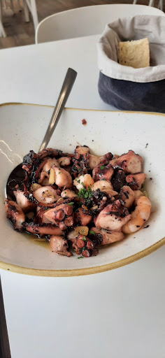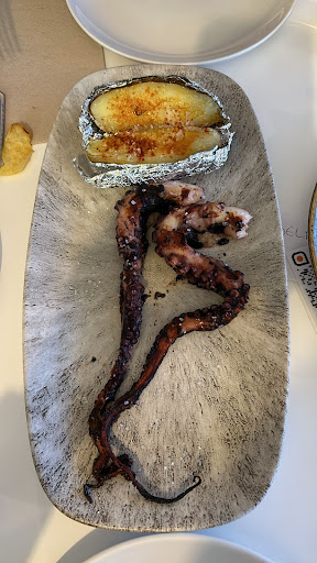 Si bien reconozco que la calidad de la comida era buena, considero que los precios son excesivamente elevados para la ubicación del restaurante y la época del año. No obstante, decidimos quedarnos y degustar el pulpo, plato que resultó satisfactorio en cuanto a sabor y textura.