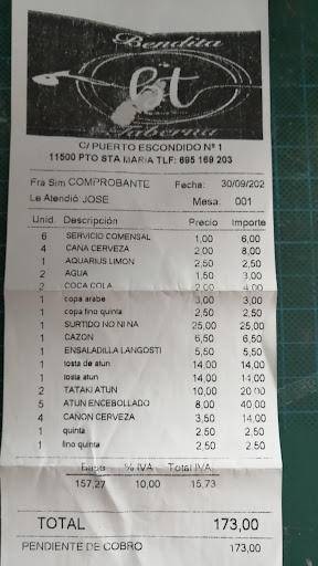 Read moreHabíamos oído hablar del sitio y cogimos reserva por boca de gente del lugar.Nos sentamos y empezamos a pedir la comanda no tenían apenas género,en concreto tres platos de los que pedimos,lo cual nos sorprendió ya que eramos de los primeros en llegar 13,30.Hasta allí se acercaron muchas familias en busca de un sitio a lo que el camarero respondía que aunque tuviera sitio sólo tenía género para las reservas que ya tenían que aunque quisieran sentarse no tenían comida.Algo que nos sorprendió mucho ya no sólo por el hecho de no ser previsor sino por lo que nos ocurrió después.Cuando ya habíamos terminado de comer(lo que les quedaba)apareció un chico negro vendiendo bisutería etc le invitamos a sentarse con nosotros y tomar una coca cola la cual pagamos junto con la cuenta también,uno de los camareros no dejaba de purular por la mesa venga a insistir en cobrarnos metiendo prisa hasta que vino el otro camarero y nos invitó sarcasticamente a levantarnos porque tenía gente esperando para ocupar mesa dejándole al pobre chico sin acabar la consumición.Hay algo que nos seguimos preguntando aunque a estas alturas nos da igual¿si no tenía más género para dar a más comensales que los que tenían reserva y nosotros eramos unos de ellos por qué tanta prisa para echarnos?En definitiva previsión y atención precaria por no decir soez y vulgar impropia hasta de los chiringuitos.Deplorable e imperdonable para no recomendar y no volver.(Cómo apunte decir que de dos raciones de zamburiñas sólo nos sacaron una,con 6, y nosotros eramos 7,porque se acabaron)quizás hubiésemos acertado más si nos hubiéramos ido a otro restaurante ya que de este género vimos bastante en los colindantes.Creo que hay mejores opciones,donde elegir en los alrededores.No tener en cuenta para nada,de lo peor que...