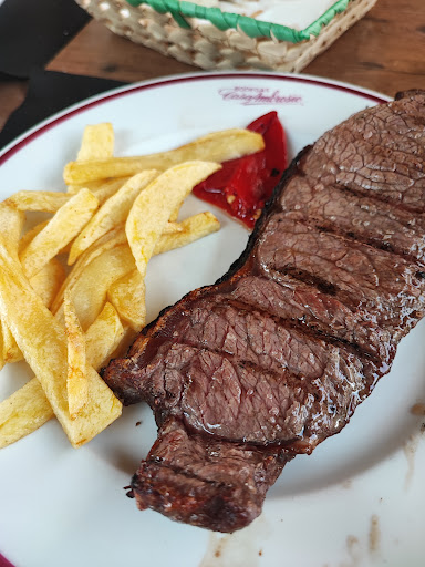 Paramos a comer en Casa Ambrosio en Oncis un grupo de 9 personas tras ascender a la Peña Montañesa (2.295 metros). Teníamos reserva a las 15:00 horas, pero llegamos con unos 20 minutos de retraso, Iván que ahora regenta el negocio familiar nos atendió con mucha amabilidad sin ninguna queja por la demora en la llegada. Comida casera muy rica, como aperitivo pan de hogaza con tomates de su huerto y ajo para preparar un rico "pan tumaca", destacaré de los primeros las escalivada, las tostadas de queso de cabra con mermelada de tomate y los huevos rotos con jamón, patatas y virutas de foie gras, de segundo las costillas de cordero a la brasa y el churrasco todos los platos con patatas fritas caseras y pimientos, dos únicos postres ambos caseros, flan de café y crema catalana que caramelizan el azúcar en la mesa con un hierro cuando te lo sirven. Las jarras de 50 cl. tanto para la cerveza como el tinto de verano heladas, algo que agradecimos al ser un día muy caluroso y venir con mucha sed del monte. Con los cafés nos invitó a unos ricos "digestivos" de elaboración propia. Además darle las gracias por el detalle de dejarnos usar la manguera del jardín para poder darnos una refrescante ducha...