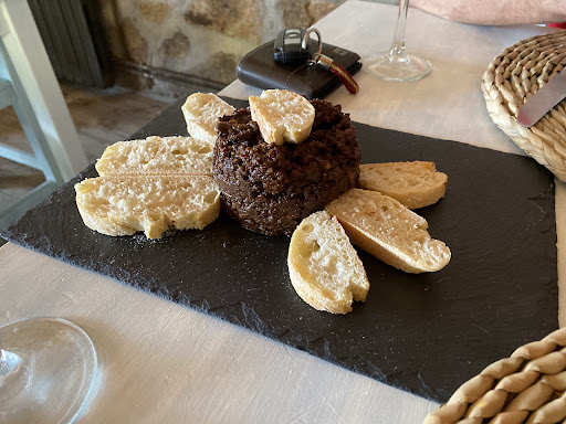 El pan riquísimo, pero te cobran el servicio a 0,70 céntimos por comensal. No parece una locura, pero sí algo que destacar. De aperitivo nos pusieron un buen cuenco de aceitunas que no nos cobraron y que deja en un olvido los 70...