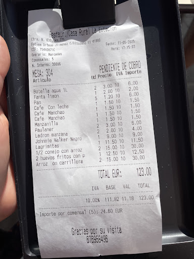 Debo decir que la comida en general estaba buena pero nada fuera de lo común ni destacable por su sabor ni por su cocinado, a excepción de la carrillada. Lo detallado con 10 bebidas y 7 cafés/infusiones ascendió a 97.30€. Por cierto, otra curiosidad es que cobran 0.80€ por comensal en concepto de pan y picos, algo adecuado siempre y cuando sirvan lo citado por comensal. Pusieron dos paquetes de picos pequeños (calculo que 30gr) y un mini trozo de pan por cabeza.