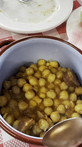 La comida es el punto fuerte, con un enfoque en platos caseros llenos de sabor. De los cuatro platos que pedimos, todos sorprendieron por su potencia y calidad, pero cabe destacar especialmente las garbanzas, que son uno de los platos estrella. Su sabor auténtico y la textura perfecta hacen que te transporten directamente a la cocina tradicional. Sin duda, un plato que merece especial mención.
