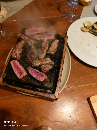 We got the Passion fruit Ceviche (surprisingly tasty seasoning), grilled vegetables (generous quantity on an iron pan), Bellota Iberian pork on a hot stone (high quality meat), cod Bacalao (generous size and tasty sauce), and Polvito Uruguayo as dessert (very well balanced between a creamy feel a dose of crunchiness)