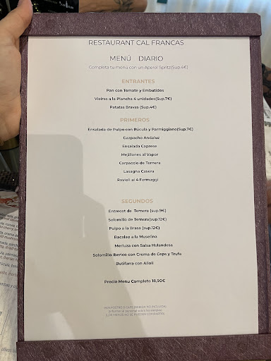 🔻 1. Menú más caro, lleno de suplementos y mal explicado En el restaurante, el menú costaba 18,90 € y casi todos los platos tenían suplemento, salvo uno de los primeros. Nada que ver con lo que se anuncia en Google.