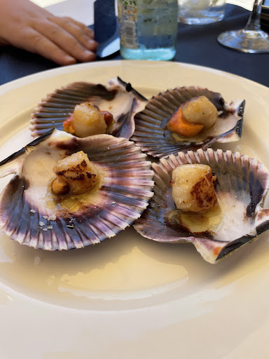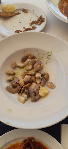 -Ensalda lechuga, carne de membrillo y cacahuetes... muy pobre. .si fuste..aguada..me dio la sensación que esa ensalada preparada en casa en 5 minutos saldría mejor. Boquerones fritos. Bastante grandes(no pasa nada)pero la fritura poco cuidada,como muy pochos, sin buen sabor de pescado frito.. Coquinas, 1/3 de ellas sin abrir, el resto pasadas(secas y sin jugo) y con bastante arena. Calamares en salsa Americana con arroz blanco. Sabroso pero tanto el arroz como los Calamares tenían un toque que recordaba a sabores enlatados..