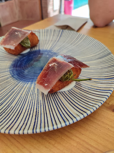 El personal es especialmente amable y atento y el local es muy bonito y está muy muy cuidado y limpito. En cuanto a la comida, nosotros nos decantamos por el risotto de pulpo (opción fuera de carta), las croquetas de serranito (riquísimas y también como una de las opciones de las que disponen fuera de carta) y revuelto de bacalao. Por último, de postre probamos la tarta de Lotus que nos sorprendió muchísimo de lo rica que estaba y un café que también estaba delicioso.