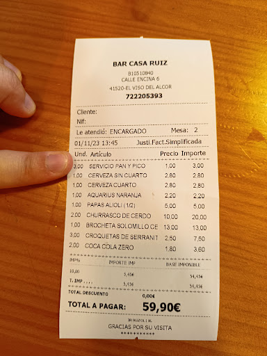 Read moreVery nice food great service from the staff our spanish is limited and staff helped us with our order and never complained . Thank you .it was a Tuesday night a few family's having meals in a relaxed venue food was great wine was lovely reasonable priced i had steak Jill had cuttle fish .they even offered to drive us back to our airbnb instead of us walking thanks for the offer we had a lovely typical spanish night we will be back cruz campo beer superb on draft...