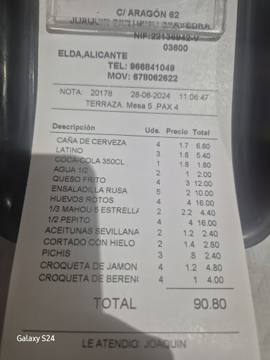 He ido a cenar con mi familia y la verdad no veo nada justo el precio de las raciones que hemos pedido es "totalmente desorbitado", los huevos rotos 16 euros para unas patatas con 2 huevos fritos sin nada más...14 euros de un queso frito lo veo un poco caro,los medios bocadillos nos lo han cobrado a 4 euros cada medio, una barbaridad!!! decir que íbamos 2 niñ@s y 2 adultos pues mi madre no ha cenado y venía a acompañarnos...la comida no estaba mal pero la cuenta 90,80 euros lo veo excesivo pues son precios que se pagan en la costa...fuí por recomendación de un amigo por calidad/precio pero es justo que diga que no corresponde la "calidad" al precio que me han cobrado, no volveré ni lo...